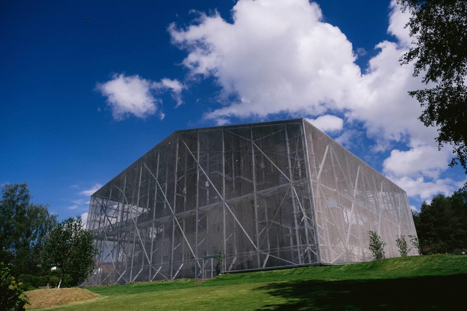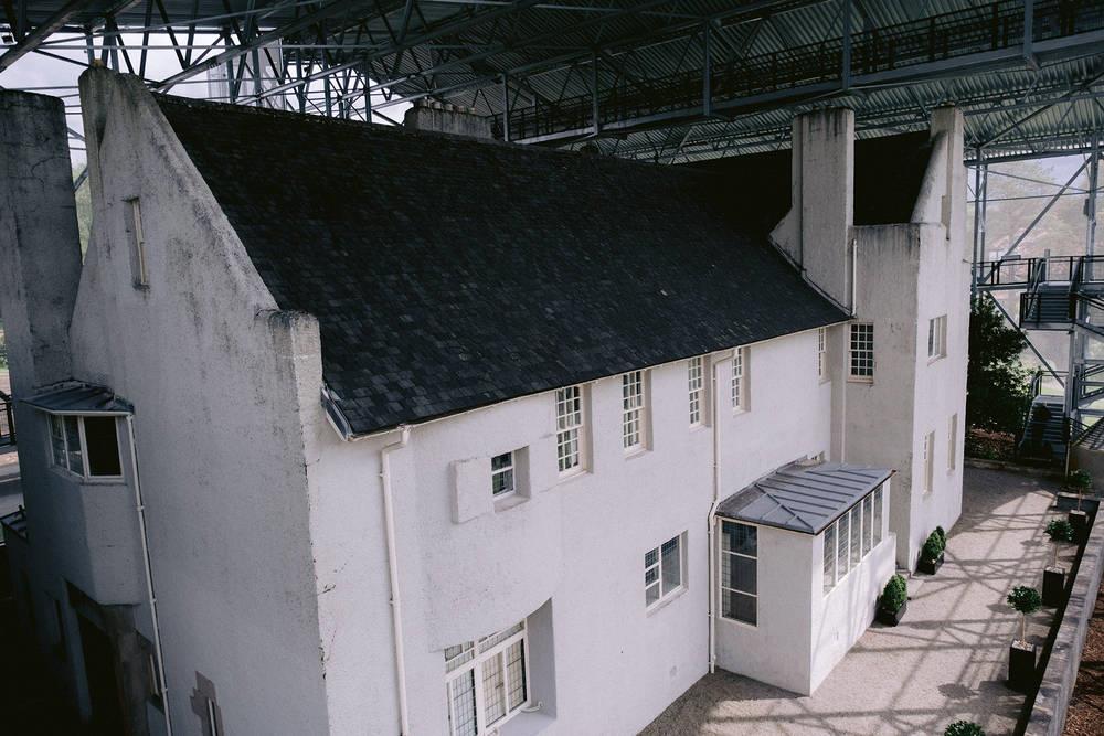 To protect the Hill House, NTS embarked on a pioneering 10 year conservation programme in 2019. The first stage has seen the construction of the Hill House Box, a protective steel frame structure covered in a chainmail mesh designed to protect the house from the rain. This will allow the walls to dry and prevent further damage.