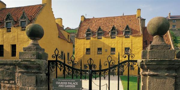 White-harled houses with red-tiled roofs line the steep cobbled streets which run from the market cross to the hilltop abbey. In the centre is the ochre-coloured palace, built by wealthy coal merchant, George Burns, with its beautifully reconstructed period garden, complete with herbs, fruit and vegetables, and rare Scots Dumpy hens. Guests will get a sense of what it would have been like to live in Culross Palace in its prime, with original painted woodwork and beautifully restored 17th- and 18th-century interiors.